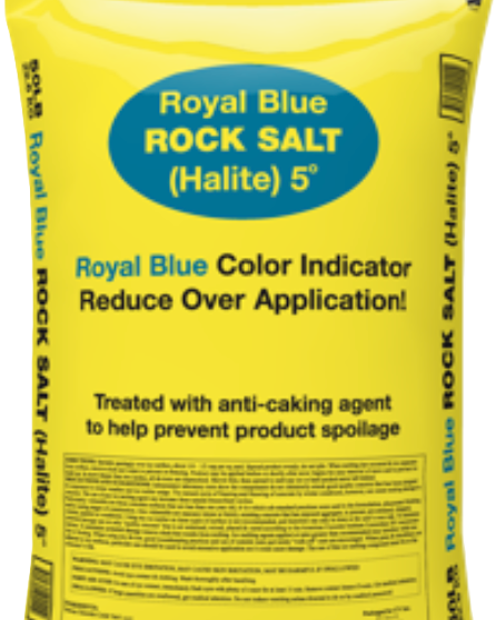 This product starts out as our all natural Midwest minded Halite rock salt and is then treated with a blue anti-caking agent that prohibits the salt from clumping and binding together. This means no stuck salt in spreaders or hard bags on a pallet. Itis rated for use in residential & commercial applications down to +5F. Available in 50lb bags